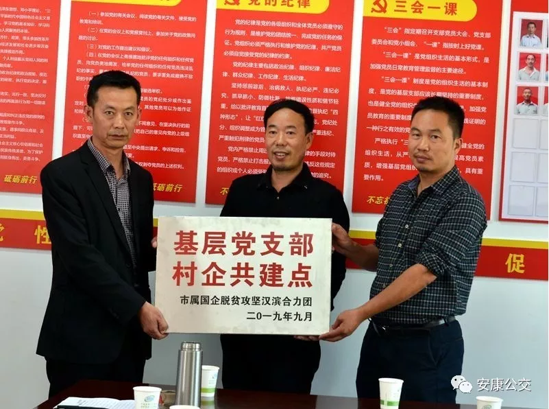 (市公交公司黨委副書記錢萬輝和市水務(wù)集團(tuán)公司總會(huì)計(jì)師陳世安共同為“基層支部村企共建點(diǎn)”授牌)
