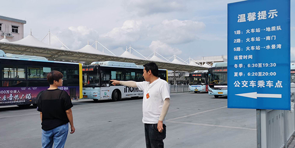 “你就在這等1路車,直達(dá)城東客運(yùn)站,不用再走到進(jìn)站路哪兒等車了?!?月11日,在安康火車站公交首末站,市公交公司一車隊(duì)副隊(duì)長寇邦正告知乘客如何趕往目的地。